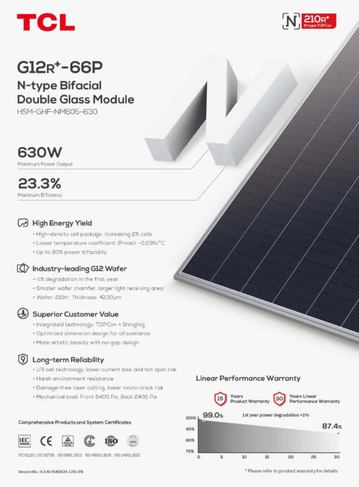 Tấm Pin Năng Lượng Mặt Trời TCL 625W